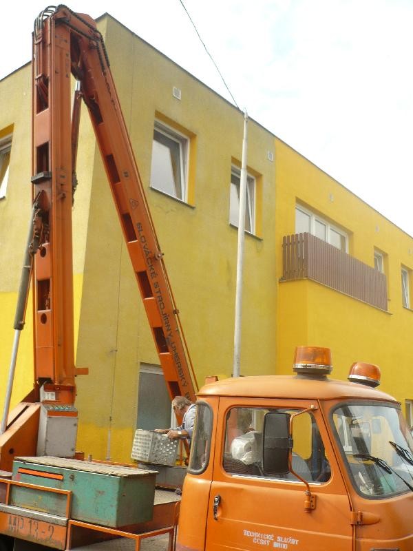 - Čištění okapů českobrodského gymnázia a výměna lamp v ulici Žižkova