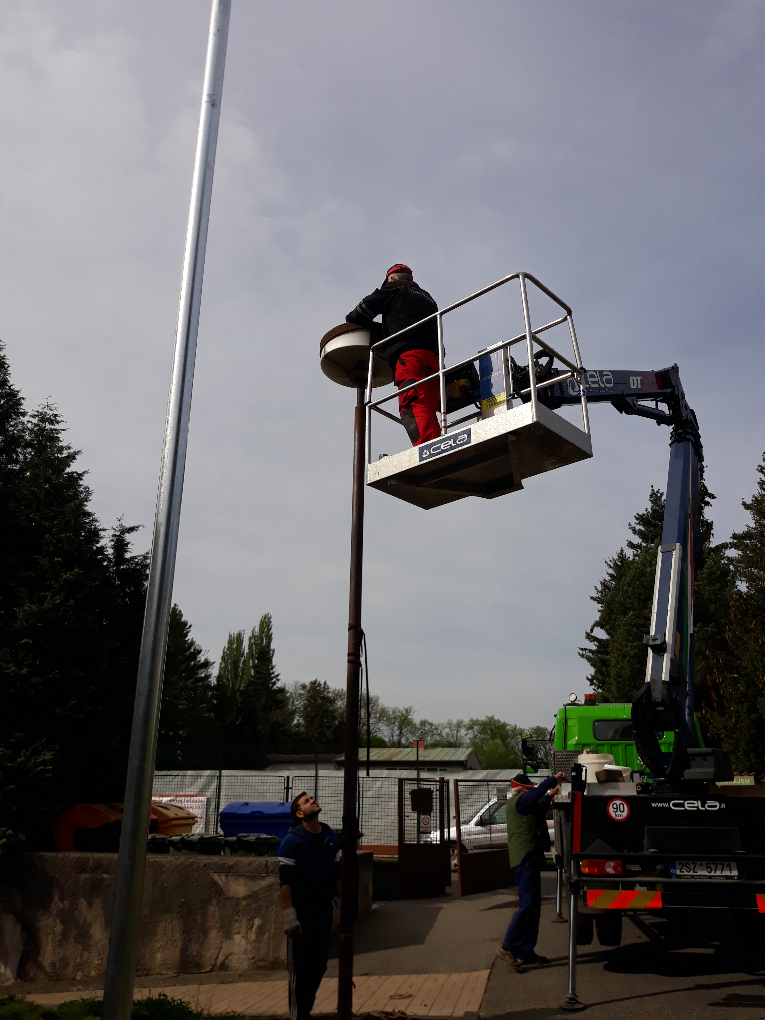- Čištění okapů českobrodského gymnázia a výměna lamp v ulici Žižkova